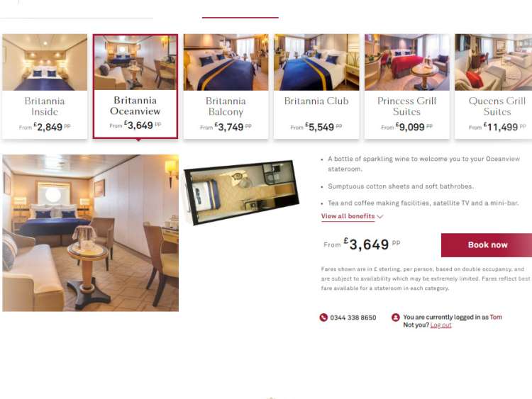 The 'Accommodation' section can be found beneath the map and itinerary details. Here you will find an outline of stateroom availability, stateroom price and also an image gallery including a virtual tour of each stateroom.