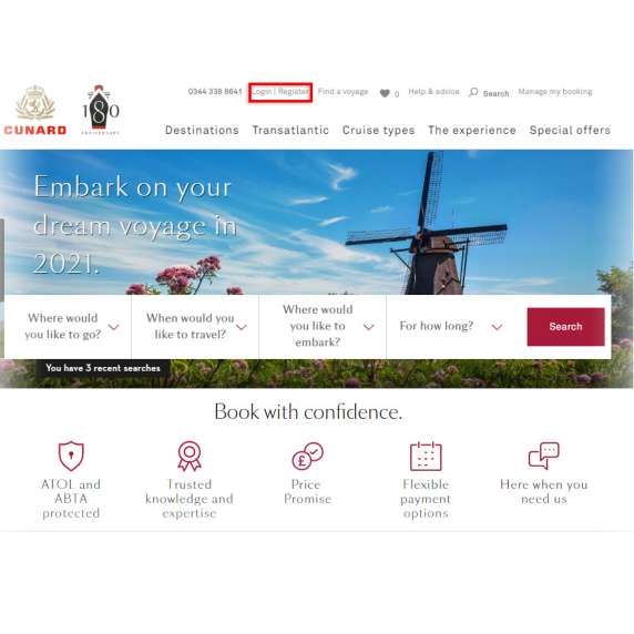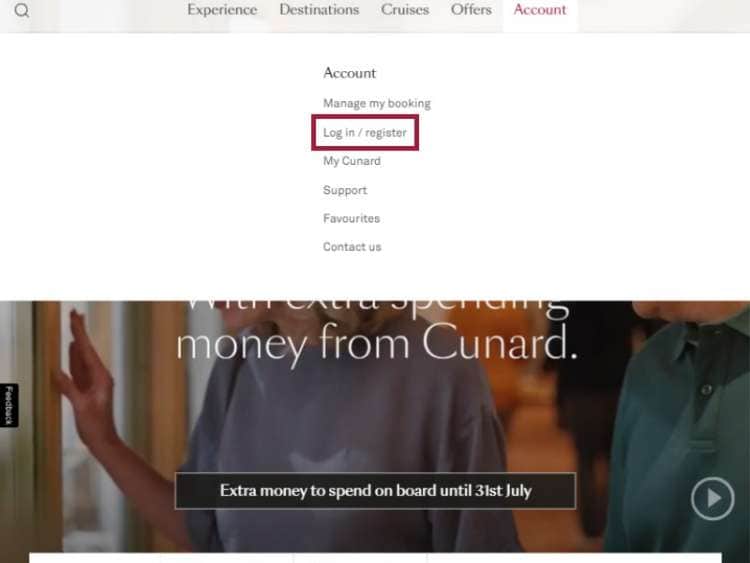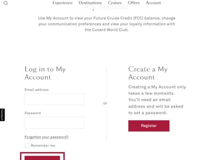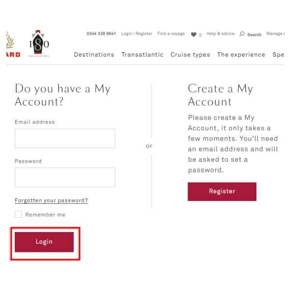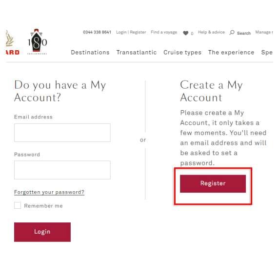Registering and logging in to your Cunard account