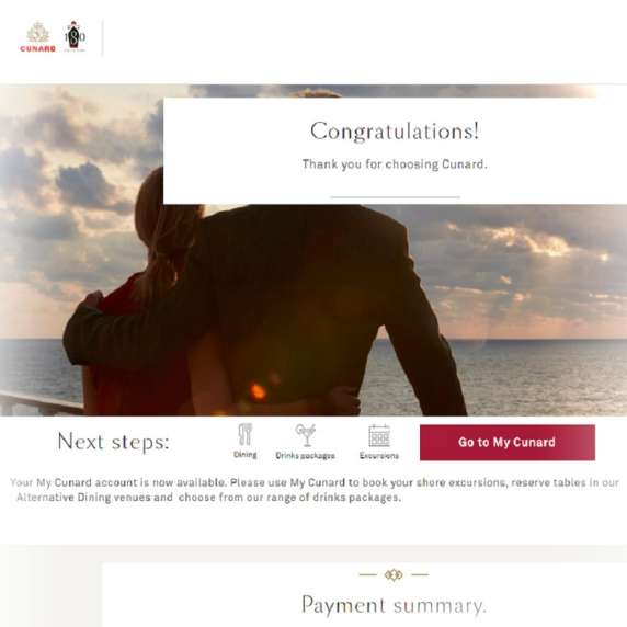 A confirmation email will be sent to the address used in your booking, which contains your voyage details, as well as a payment summary.