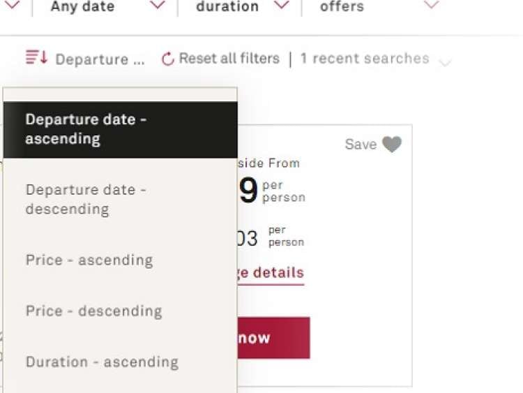 ◆ Departure date - ascending or descending