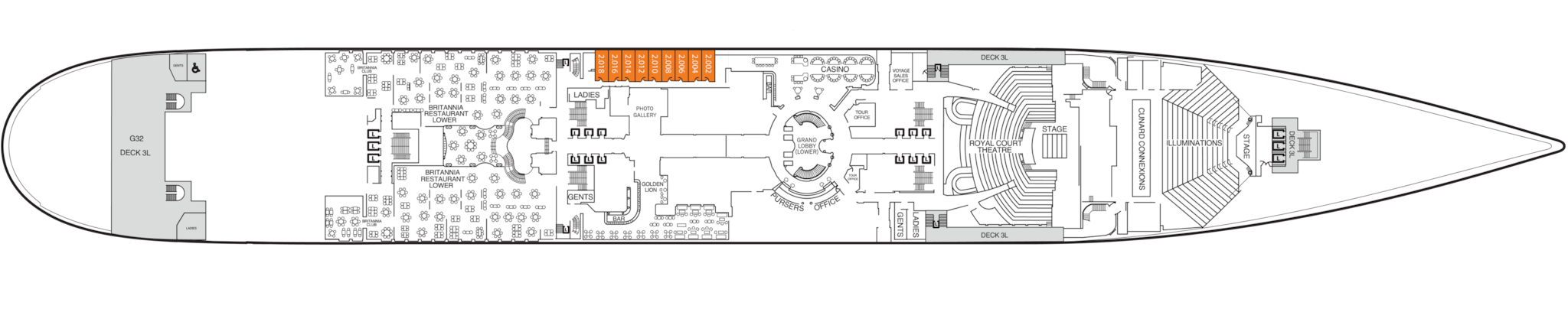 Revel in the spacious surroundings of our legendary flagship, with the freedom to do as little or as much as you please. Your time at sea is your own, and you'll find abundant possibilities to discover on board the world's last ocean liner.