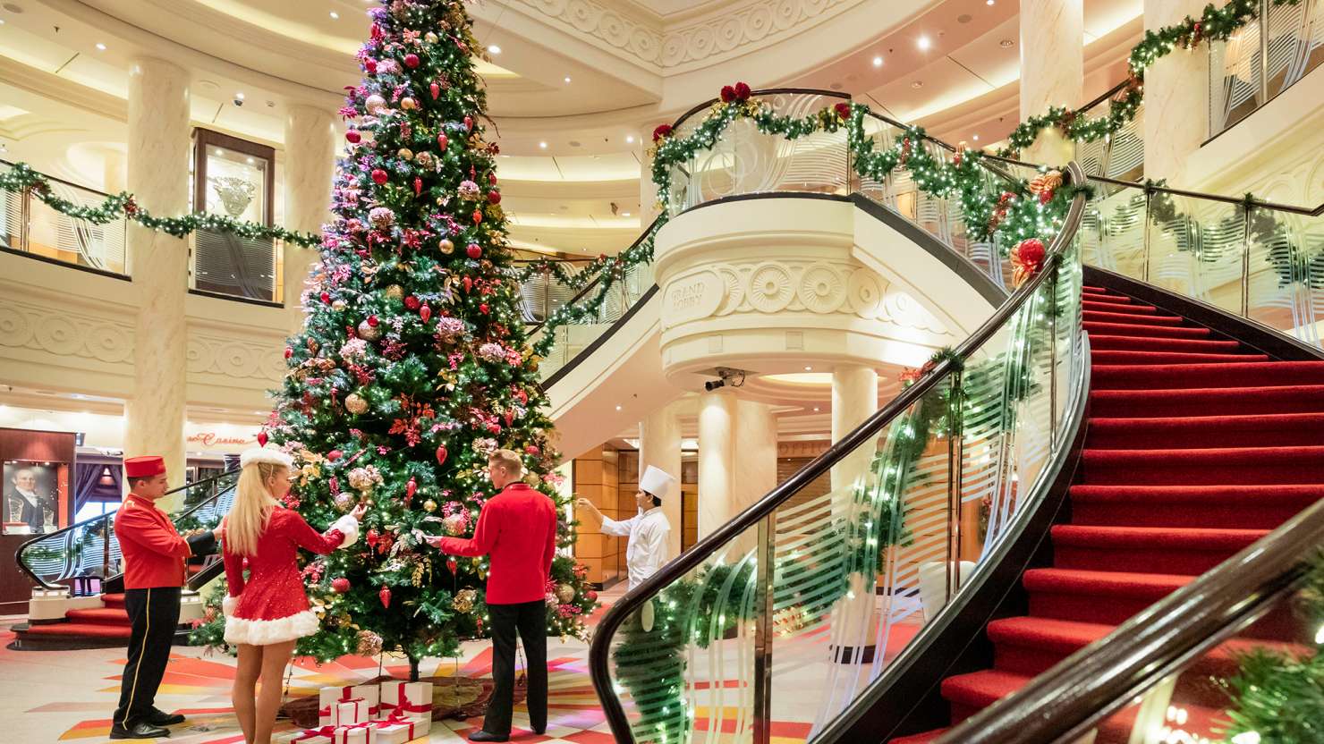 Where else would we display the centrepiece of the festive season? Our Grand Lobby is the heart of each ship and, every December, home to a beautiful tree adorned with traditional decorations. See how many other beautifully decorated trees you can spot in venues around your Cunard Queen.