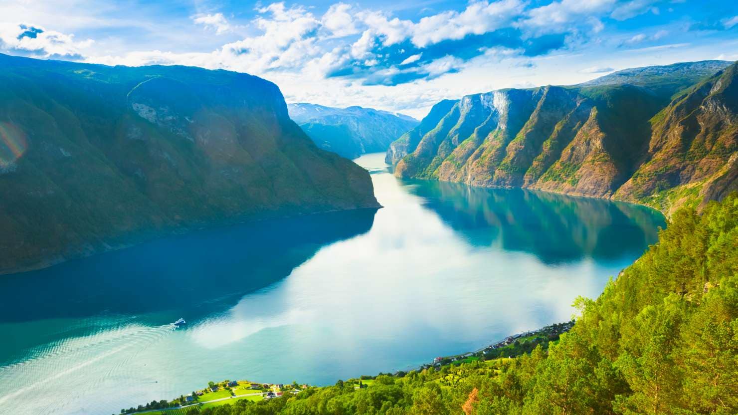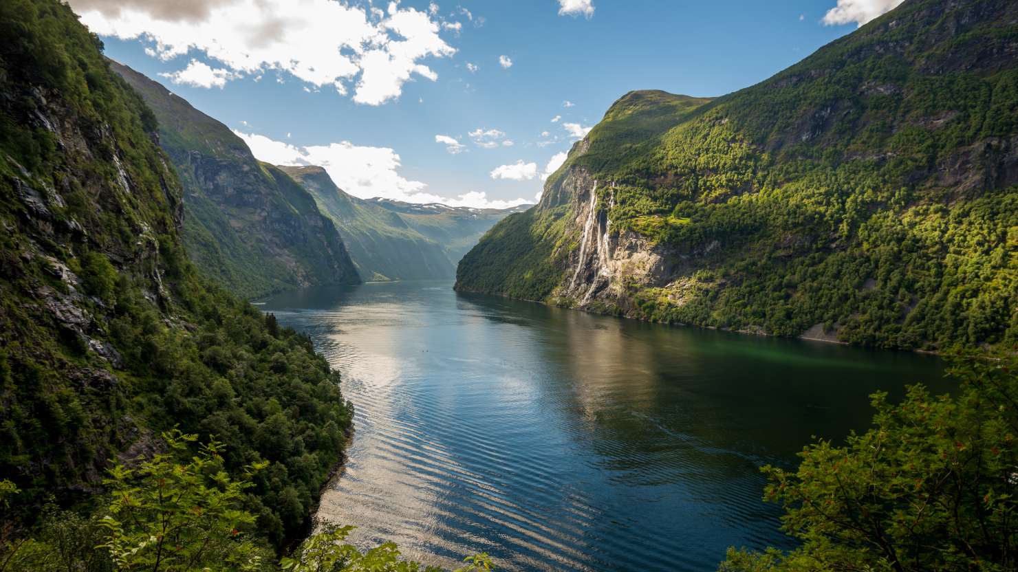 Sognefjord is the largest and deepest of Norway’s fjords, stretching 127 miles (205 kilometres) end to end, of which over 1000 metres (3,300 ft) descends to 60 miles in depth. Such a massive channel is almost a world in itself. Home to the signature verdant shores and rugged cliffs, typical of Norway’s fjords, its scale alone is enough to take your breath away. Depending on your itinerary, you could pass down one of two branches of Sognefjord: Lustrafjord and Aurlandsfjord. Given its location between two National Parks, it's perhaps no surprise that Sognefjord always features in round-ups of Norway’s 'most beautiful fjords'. Cruising its shimmering waters may give rise to wildlife spotting. Porpoises, seals, otters, eagles, puffins, and reindeer are all native to this part of Norway and seeing how many you can spot adds yet another dimension to a cruise here.