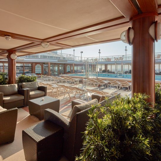 On the other hand, guests who choose a Cunard voyage for the unique sense of occasion and indulgence will find many opportunities to experience just this. Peppered throughout the open spaces on deck you’ll find inviting bars, sparkling pools, and plenty of areas in which to lounge in the sunshine.