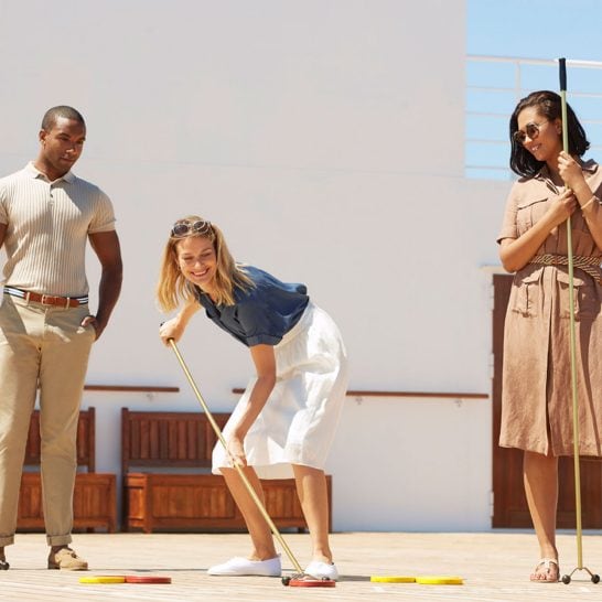 Life outdoors on your Cunard ship is something to savour and basking in the fresh sea air is only a small part of the story. Sports and deck games, such as golf, croquet, bowls, shuffleboard, deck quoits, or paddle tennis, offer a chance to learn something new or demonstrate your skills.