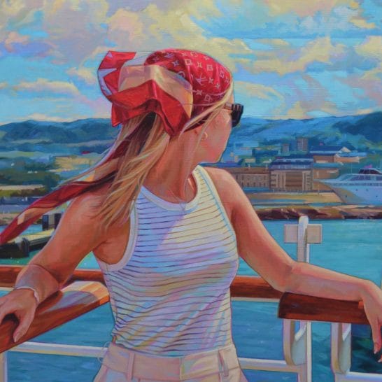 Born and raised in North Wales, Elysia Gilman is an artist specialising in portraits, figurative work, and scenes from everyday life. Primarily working in oils, she captures moments in time, drawing inspiration from her memories and experiences of cruising for this new project.