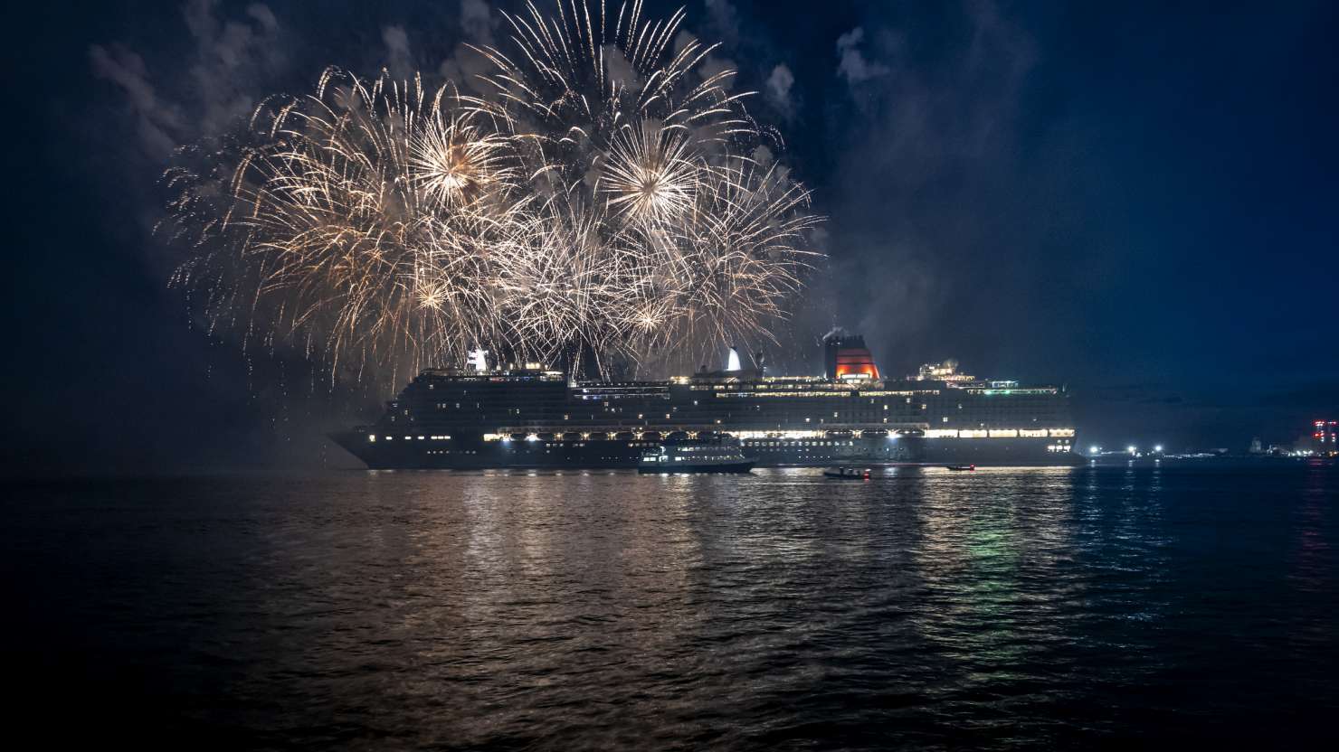 After the day’s celebrations, Queen Anne sailed out of the Mersey against a firework-filled sky, where guests on board continued on their British Isles Festival voyage.