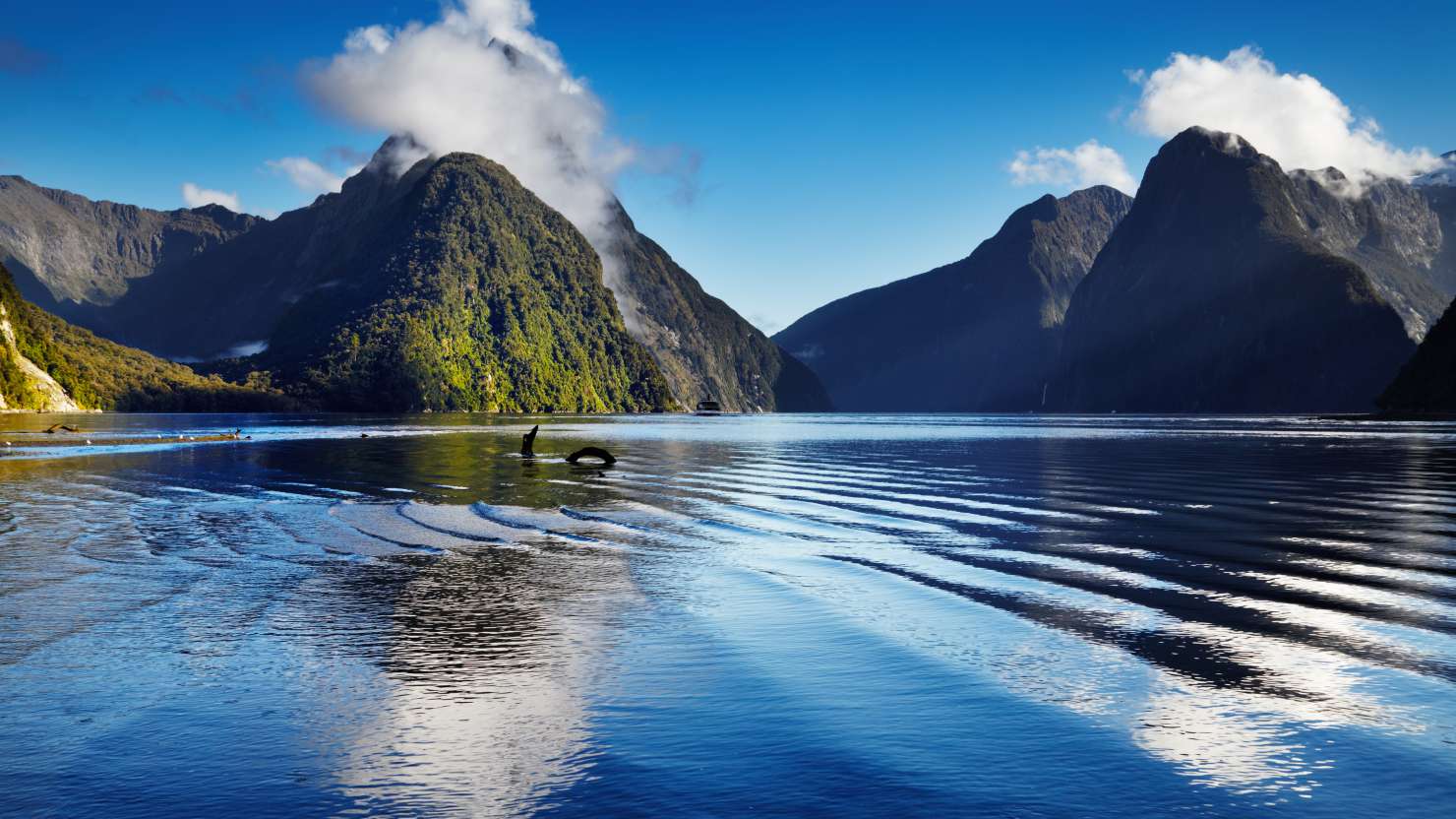 Doubtful Sound is also home to one of the largest southernmost populations of bottlenose dolphins – about 60 of them in total – who are likely to make regular cameo appearances on your Cunard voyage and also pop up in Milford Sound, another grand fiord with sheer cliffs rising like jagged snow-brushed pyramids.