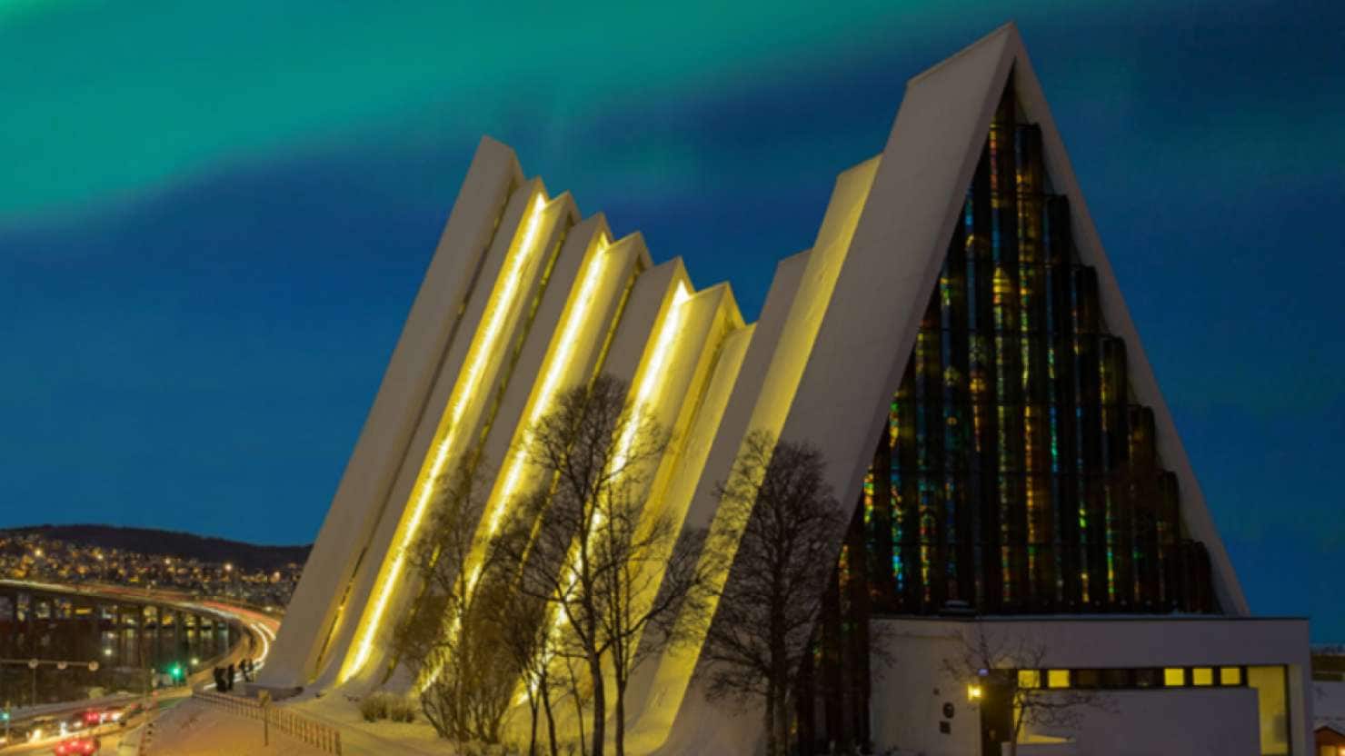 One of my favourite places to visit is the Arctic Cathedral in Tromsø. At night, it’s really something when you arrive to see the spectacular stained-glass windows lit up under the starry night sky in the shadow of the mountains. The interior is simple and elegant, and guests enjoy a recital of traditional Norwegian songs, which helps to create a wonderful atmosphere. The experience offers an insight into how the local people create light and community in this remote part of the world. Sometimes, you may even be lucky enough to see a sliver of green Aurora light appear in the sky above the church.