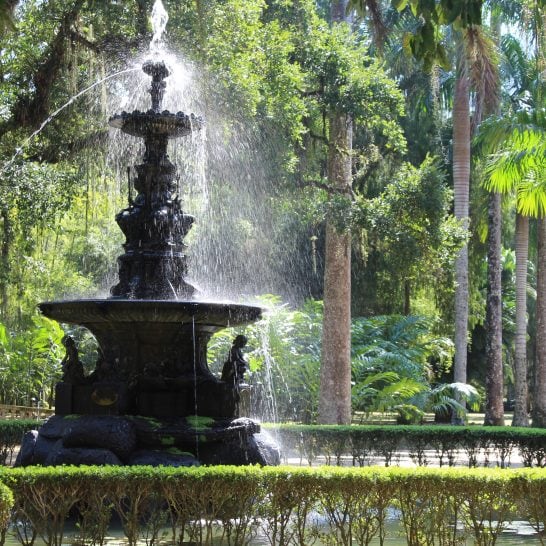 Cariocas really enjoy weekend strolls here. The gardens offer plant species from all over the globe, including rare orchids and a majestic avenue of tall palm trees. You can also see endangered black capucin monkeys.