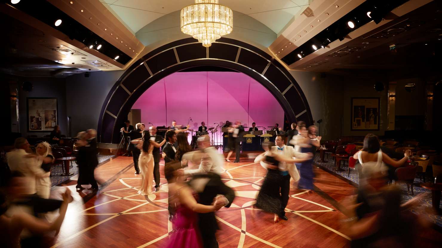 On a journey with the only true ocean liner of our time, Queen Mary 2, there are up to ten dance hosts who make the dance floor glow. For many of the guests on board, dancing in the regal-looking Queens Room is one of the "must-dos", because the way to the dance floor and the common movement to the music reinforces the feeling of joy of being free from the usual everyday obligations.