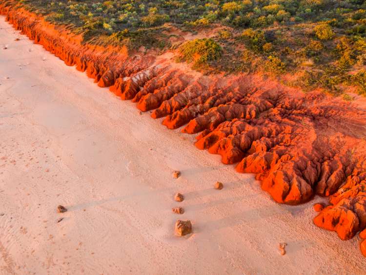 One of the most photogenic areas of Broome is its unique coast. The bright blue ocean contrasts magnificently with dusky sands at Roebuck Bay, the Mars-like red rocks at Gantheaume Point, and postcard-perfect white sands at Cable Beach. Every patch of this unique shore is a sight to behold.