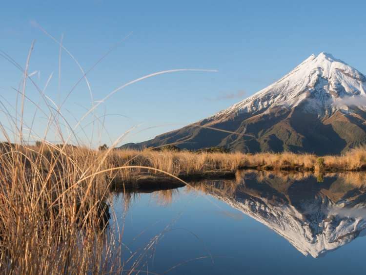 At 8,261 feet Mount Taranaki dominates the skyline of New Plymouth. Covered in a veritable maze of hiking trails, the dormant volcano is surrounded by thick forests filled with lush waterfalls, rainforests, and mossy swamps.
