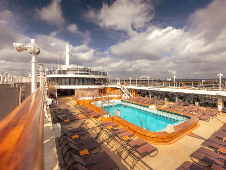 Queen Anne and Queen Mary 2 feature this versatile venue towards the center of the ship. Both feature a retractable glass roof, but this is where the similarities end.