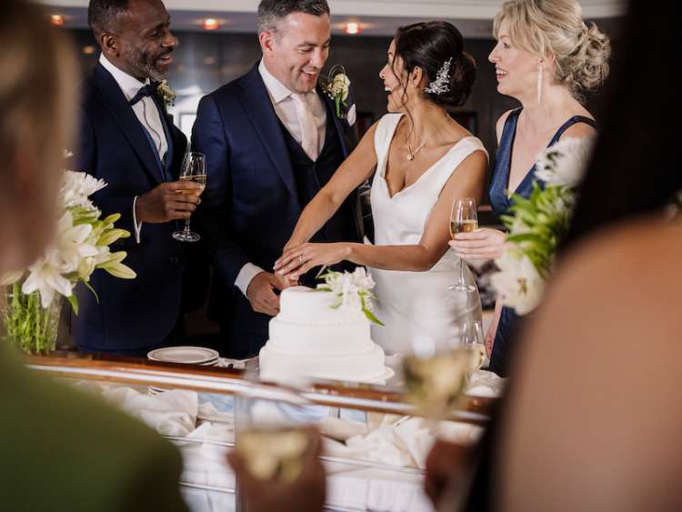 “It was perfection from the start, from having printed invites – even though we didn’t have many guests – to the room, which looked spectacular. As soon as I walked in, I saw the beautiful flowers and my bridal bouquet was gorgeous. It was lovely to be escorted from the stateroom by the Bell Boy – as he took my arm, I felt really relaxed.” – Denise Maloney, married on board Queen Mary 2.