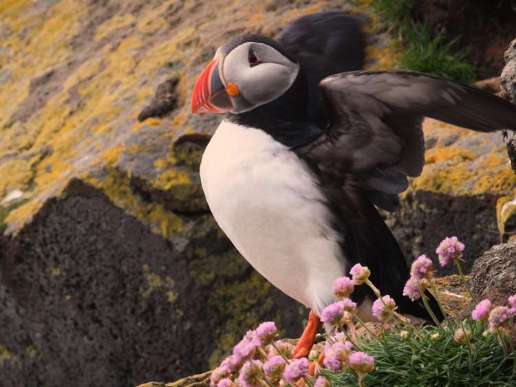 A myriad of bird species skim, swoop and dive within swirling eddies and along current lines. Common sightings include black-legged kittiwakes, bald eagles, common murres, and even hummingbirds. The most iconic to see are the horned and tufted puffins. Typically more of an open water seabird, puffins are rarely seen in protected waters such as these, but the plentiful food supply likely draws them in. They’re easy to spot. Look for their bright beaks, rotund bodies and pretty poor flying skills, especially at take-off and landing.