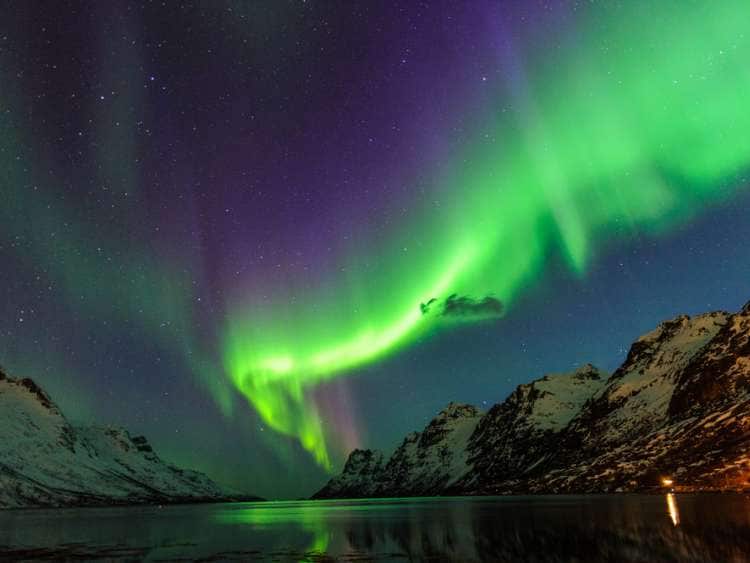 Witnessing the world-famous Northern Lights is a truly magical experience. Reminiscent of a scene from a sci-fi film, the mesmerizing green hues of the aurora borealis lighting up the night sky are a spectacular sight to behold.