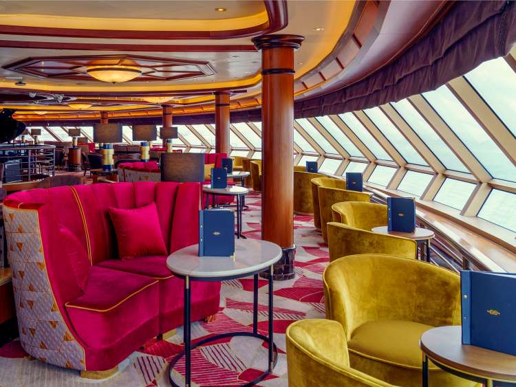 Choose from the full bar, whether it’s a pint of signature Cunard ale, a dram of whiskey, or something else, and maybe indulge in a tasty pub meal as you soak in the lively atmosphere. Later on, live sports, karaoke, and pub quizzes are among the entertainment options here.