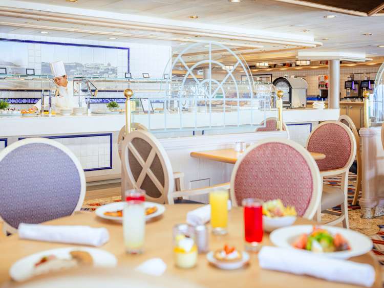 When you're in the mood for a more informal dining experience, The Lido buffet is sure to appeal. This casual but considered dining spot offers a relaxed approach to dining, with self-service food stations showcasing an array of culinary delights. Whether you're craving something quintessentially British or a dish inspired by the ports on your cruise, you’ll find it here. Hot dishes are updated daily, while fresh hand-rolled sushi and salads are always available at lunchtime. From 3pm, the Lido tempts you with Afternoon Tea favorites, including finger sandwiches, scones, and cakes. Towards the end of the evening, the Lido offers a late-night buffet, where you can indulge in one final culinary adventure before retiring to bed.