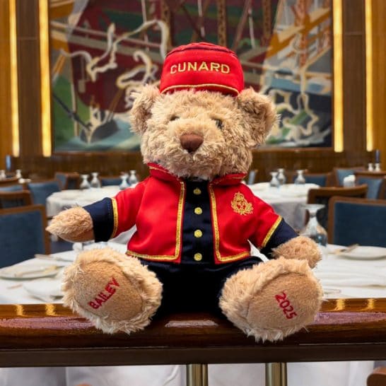 To celebrate our 185th anniversary in 2025, Bailey the Bellhop is the latest in our collectable range of teddy bears to wear the illustrious uniform and makes a treasured memento to keep for yourself or gift to friends or family. A very special bear to honour a Cunard icon.