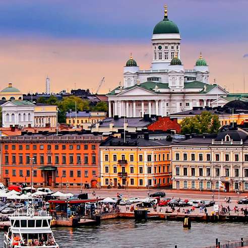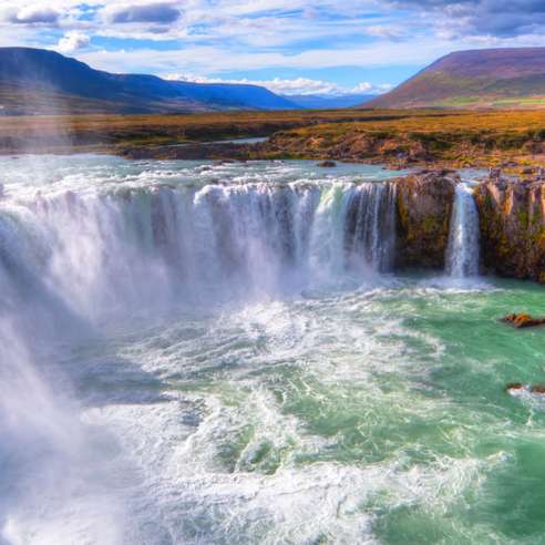 The world’s most northern capital city of Reykjavík makes a fascinating finale to your Iceland vacation. Here, you’ll be greeted by a mass of brightly-colored corrugated iron roofs – just one of the charming sights to enjoy in this greenest of global cities – along with a vibrant shopping and culinary scene. On our breathtaking Golden Circle excursion, you can drink in the views of waterfalls and the spouting geysers along with a wealth of other natural beauty and geothermal wonders close by. These include the dramatic landscape of UNESCO World Heritage Site Thingvellir (Þingvellir) National Park; the majestic Gullfoss Waterfall; and not least, the geothermal area of Geysir where you can watch the spectacular geyser Strokkur launch a 75-foot jet of hot water into the air.