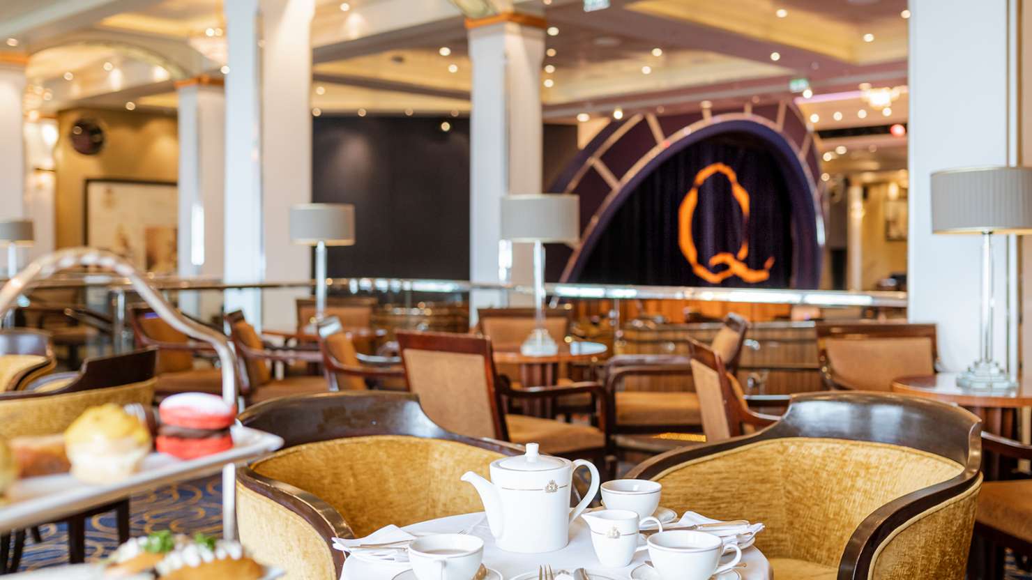 Whether or not you choose to add a cheeky glass of fizz for that extra sparkle, Afternoon Tea is a Cunard staple, and with good reason. Freshly baked scones, savory finger foods, and delicious patisserie, are all yours to enjoy, brought to you at your table in our sumptuous Queens Room by white‑gloved waiters.