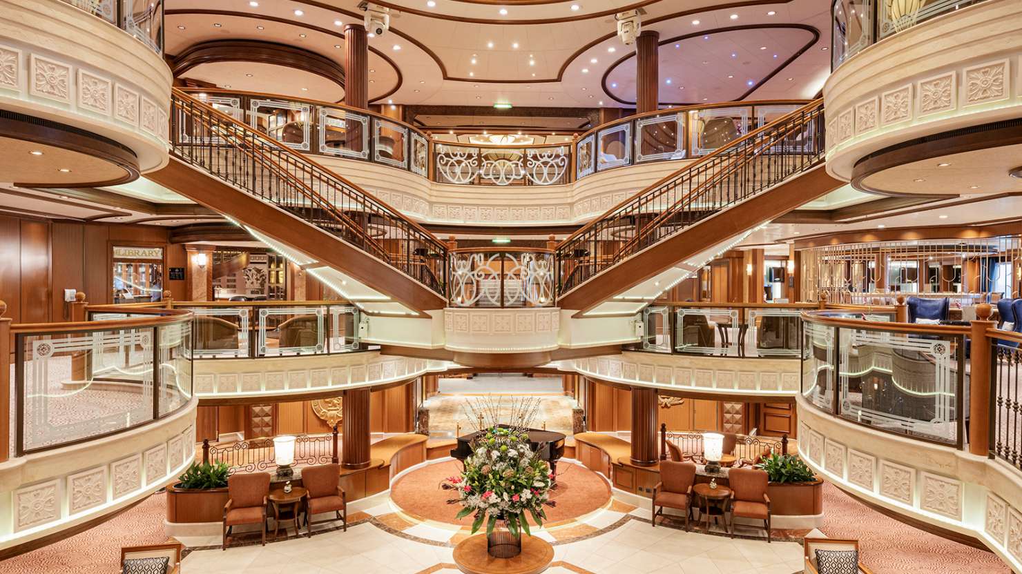Each of our Queens boasts the magnificent Britannia Restaurant, a stunning two-story dining area that radiates grandeur. It's the perfect venue for indulging in a lavish dining experience in sumptuous surroundings.