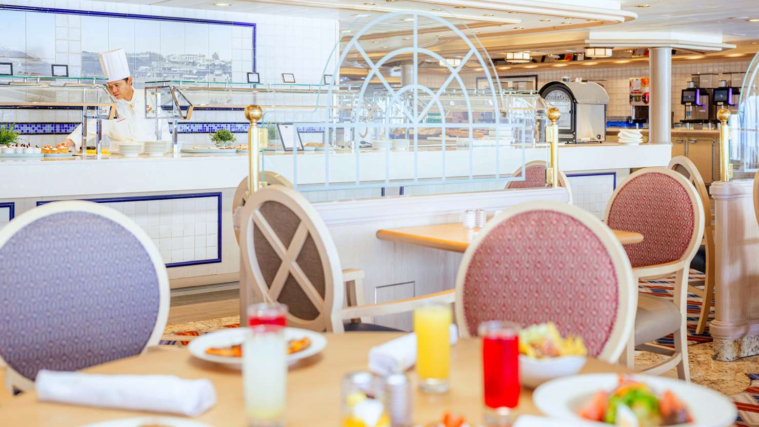 Each Cunard Queen has a buffet-style restaurant on board, which can be popular among families whose members have varying tastes. On Queen Victoria and Queen Elizabeth, it’s The Lido, on Queen Mary 2 it’s Kings Court, and on Queen Anne it’s Artisans’ Foodhall.