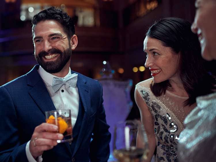 Events are a highlight of the Cunard experience, from canapé receptions with the captain to gala evenings. On Alaska cruises, travelers dress to impress in formal wear and brilliant white dresses for an Ice White Ball, inspired by the breathtaking glacial backdrops.