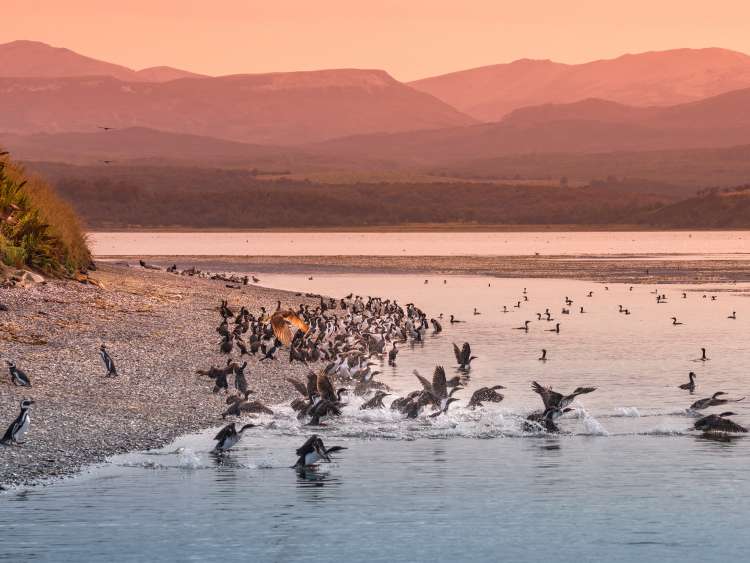 Along this 150-mile stretch of water which separates the Isla Grande de Tierra del Fuego from several smaller islands, admire tooth-like peaks whose snowy heads rise over thickly forested slopes.