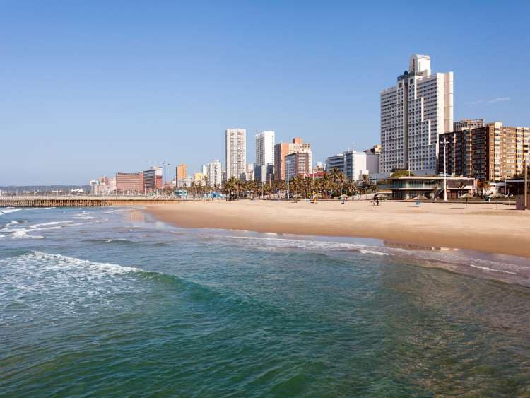 Durban can be thought of as South Africa’s Riviera, basking as it does in a pleasant subtropical climate. Its enticing beachfront, known as the “Golden Mile,” actually offers over three and a half miles of sandy shore where surfers and swimmers flock to waters warmed by the Mozambique Current.