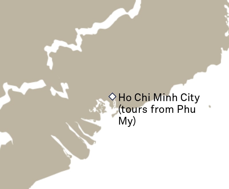 Pronounced “Foo Me”, Phu My is the closest port to Ho Chi Minh City, also known as Saigon by the locals. The fastest, safest and simplest way to reach the city is by bus, through one of our shore excursions. The journey takes around an hour and a half, meaning you can dock in the morning and be exploring the legendary Ho Chi Minh City by early afternoon.
