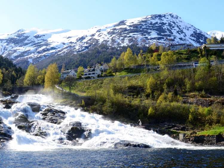 Village stop Hellesylt allows for further exploration to a famous waterfall, an up-close encounter with a glacier and the beauty of Jostedal Glacier National Park.