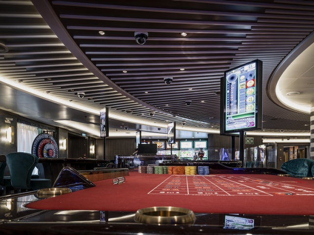 夜になると、カジノが賑わいはじめます。初めての方からハイローラーの方まで、どなたにもお楽しみいただけるゲームが揃っています。種類豊富なスロットやテーブルゲームで大胆な一面をのぞかせてみるのも、キュナード・マティーニや多彩なバーのメニューからお好きなものを片手に雰囲気を楽しむのもおすすめです。