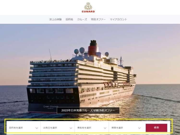 クルーズ検索機能は、ご希望の条件にもとづいて検索を絞り込み、お客様に合ったクルーズを見つけるためのツールです。