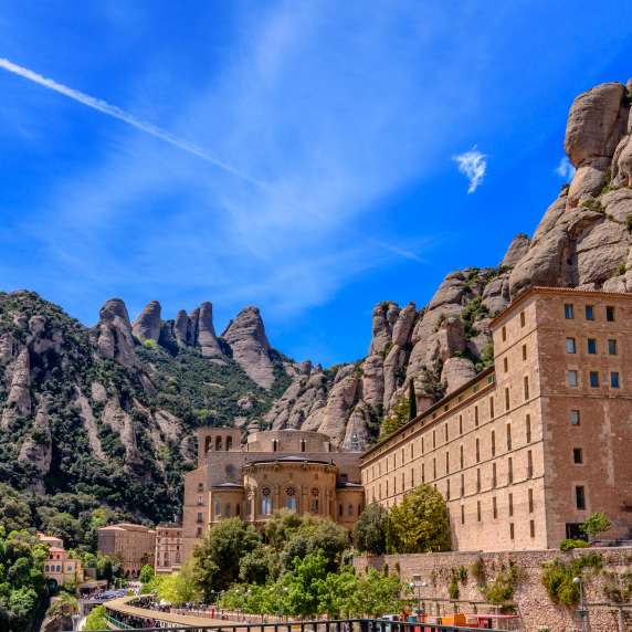風光明媚な登山鉄道に乗って、モンセラット修道院付近まで登るツアーです。頂上に着いたら、美しく険しいモンセラット山脈にひっそりと佇む、1,000年の歴史を持つ修道院をガイド付きで見学します。