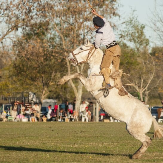 本物のガウチョ・フェスティバルに参加して、アルゼンチンならではの体験をお楽しみください。ブエノスアイレス郊外の農場では、伝統的なアルゼンチンのアサード(BBQ)をさまざまな付け合わせとともに味わいます。ごちそうの後は、くつろぎながら民族音楽を聴き、ガウチョ(カウボーイ)が印象的な馬術の腕を披露するのをご覧ください。