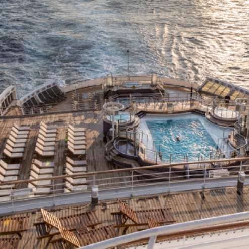 船内のどこを拠点にするかを決める際、考慮すべき点がいくつかあります。夜は遅くまでダンスをしたり、生演奏を聴いたりして、客室外で過ごされる予定かもしれません。そのような場合は、バーやエンターテイメント会場に近いロケーションがおすすめです。一方、早めにベッドでお休みになりたい場合には、このようなエリアは避けたほうが良いでしょう。朝食後にプールサイドで過ごす予定の方は、プールに近いお部屋をおすすめします。