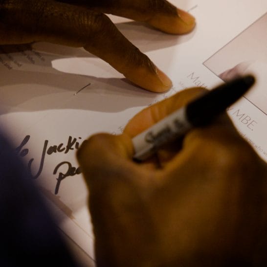 クルーズの最終日には、スター出演者たちがクイーン・メリー 2のグランド・ロビーでお客様にお別れの挨拶をし、写真撮影が行われました。数百のプログラムにサインがなされ、お客様はキュナードでしか体験できない船旅の記念として持ち帰りました。