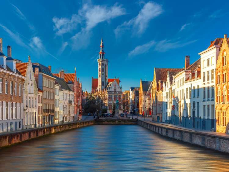 ブルージュに着いたら、13世紀に建てられた鐘楼のあるマルクト広場へ向かいましょう。ここは世界遺産に登録されている保護区域です。高さ83mの塔からは、素晴らしい市街地の眺めを満喫していただけます(366段の階段を上る必要があります)。階段を上らなくても、広場には多くの写真撮影のチャンスがあります。その他の見どころにはゴシック様式の市庁舎や聖血礼拝堂などがあり、どちらもブルグ広場に位置しています。礼拝堂にはキリストの血が入っていると言われるクリスタルの小瓶が収められています。広場はブルージュ最古の建造物の1つで、多くの歴史的建物が建ち並んでいます。