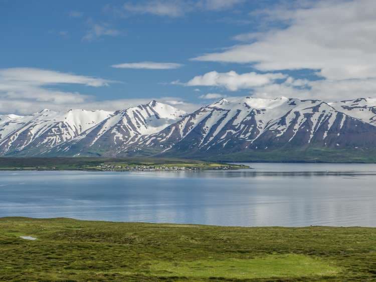 閑静なエイヤフィヨルズルを進むと、フィヨルドの最奥に位置する美しい街アークレイリに着きます。途中、海岸沿いの小さな町や村を通り過ぎます。