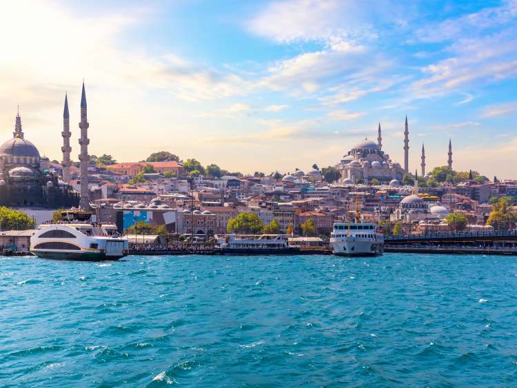 イスタンブールのクルーズターミナルは街の中心部から約3.2kmの場所にあり、涼しい日には橋の上を歩いてドームやミナレットを望む絶景を楽しむことができます。暑い日には、シャトルバスもご利用いただけます。