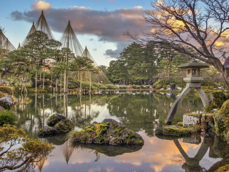 金沢旧市街は徒歩で散策ができ、周辺には多くの観光スポットがあります。なかでも、ひがし茶屋街はおすすめです。伝統的な茶屋が立ち並ぶ保存地区で、金沢の歴史を垣間見ることができます。兼六園は日本で最も美しい庭園の1つとされ、金沢の人気スポットです。ここを訪れる観光客は、五感を刺激する季節の変化を体験できます。兼六園の向かいには、街のシンボルである金沢城公園があります。かつての加賀藩主、前田氏によって建てられたこの城は、昔ながらの伝統的工法で復元されました。また、鳥居や伝統的な日本美術に彩られた金沢駅は必見です。